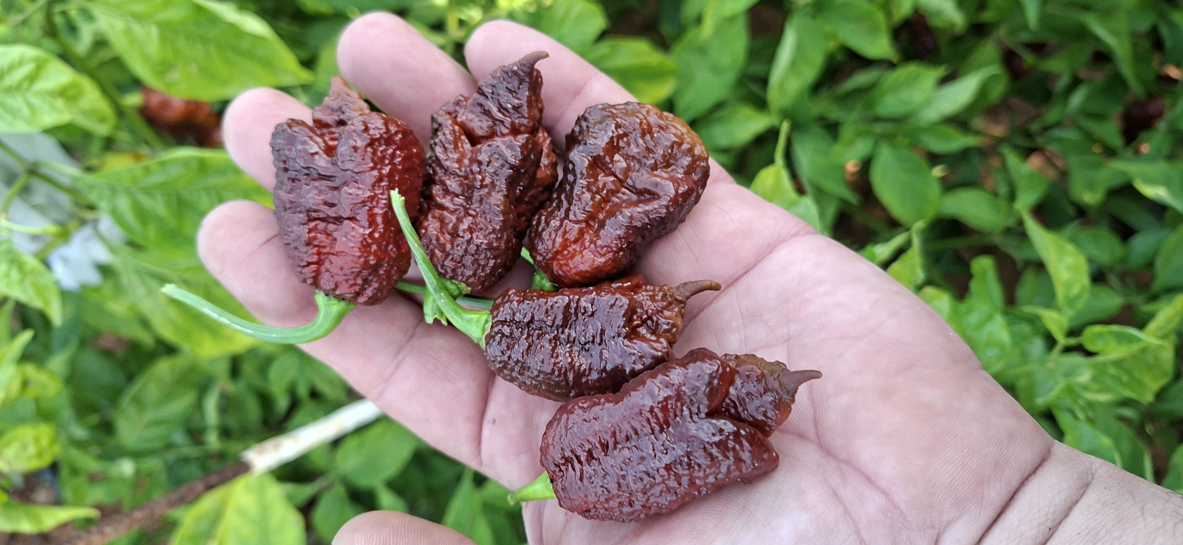 Altra cross targata faddas pepper, realizzata nella stagione 2020 e coltivata in f1 nella passata stagione (2021) cross realizzata con l'incrocio di due super hot d'eccezione che hanno in comune una elevatissima piccantezza! Questa stagione in f2 si è presentata oltre alla versione choco,quella mustard . Questa è la versione choco della cross. I semi sono estratti da pianta f5, quindi voi coltiverete una f6! Tuttavia vista la giovane età tutto può succedere e quindi meglio piantare quante più piante per avere un buon risultato!