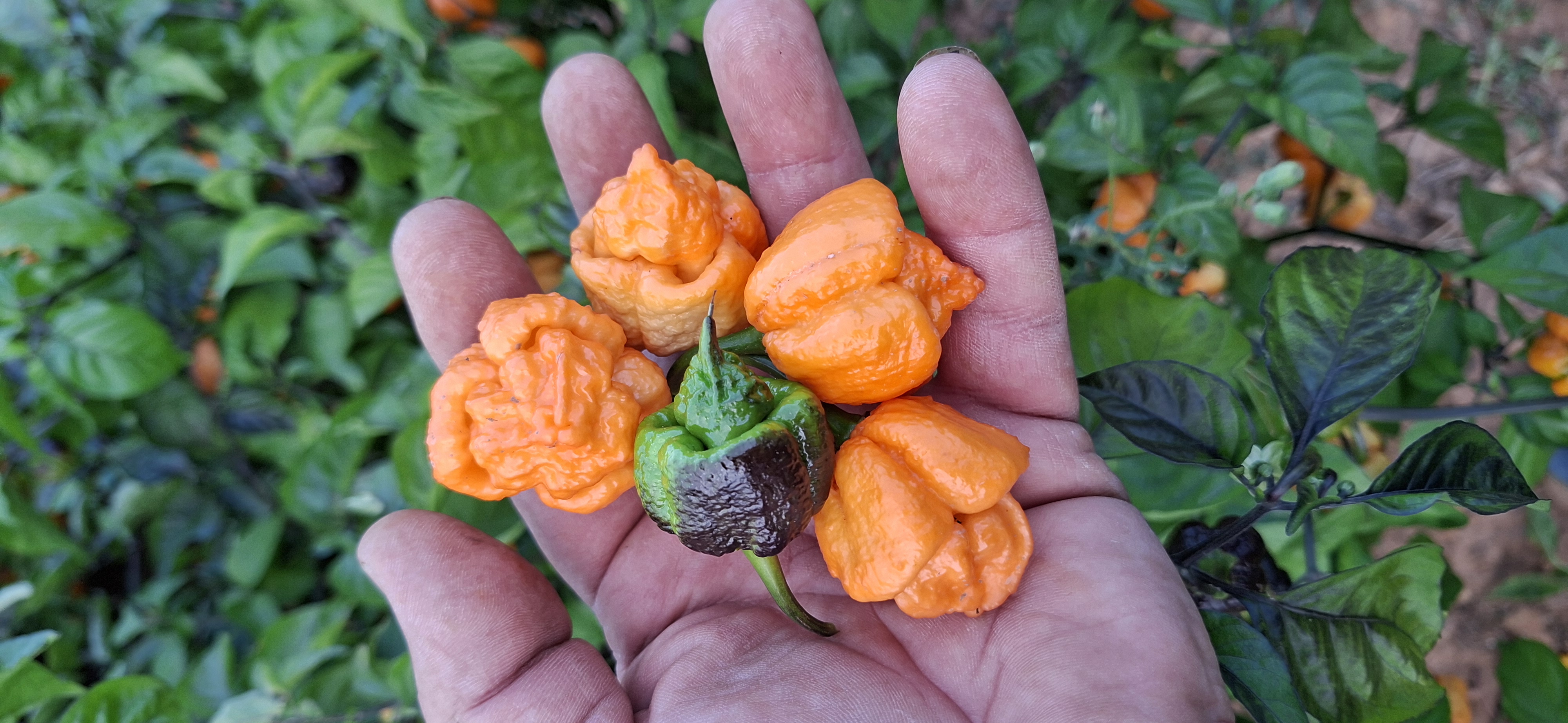 Altra croce targata faddas pepe. Incrocio manuale tra un bellissimo BBM e il Pockmark orange. Cross realizzato nella stagione 2020 e coltivata nella stagione 2021 per la prima volta in f1. Pianta alta scura intorno ai 150 cm, con frutti che in f2 hanno avuto variante di colorazione... Piccantezza molto elevata e gusto che si avvicina al BBM. Questa è la variante orange   . .Si consiglia di mettere quante più piante per avere un buon risultato, vista la giovane età della croce. I semi vengono estratti da pianta f5, quindi voi coltiverete una f6!